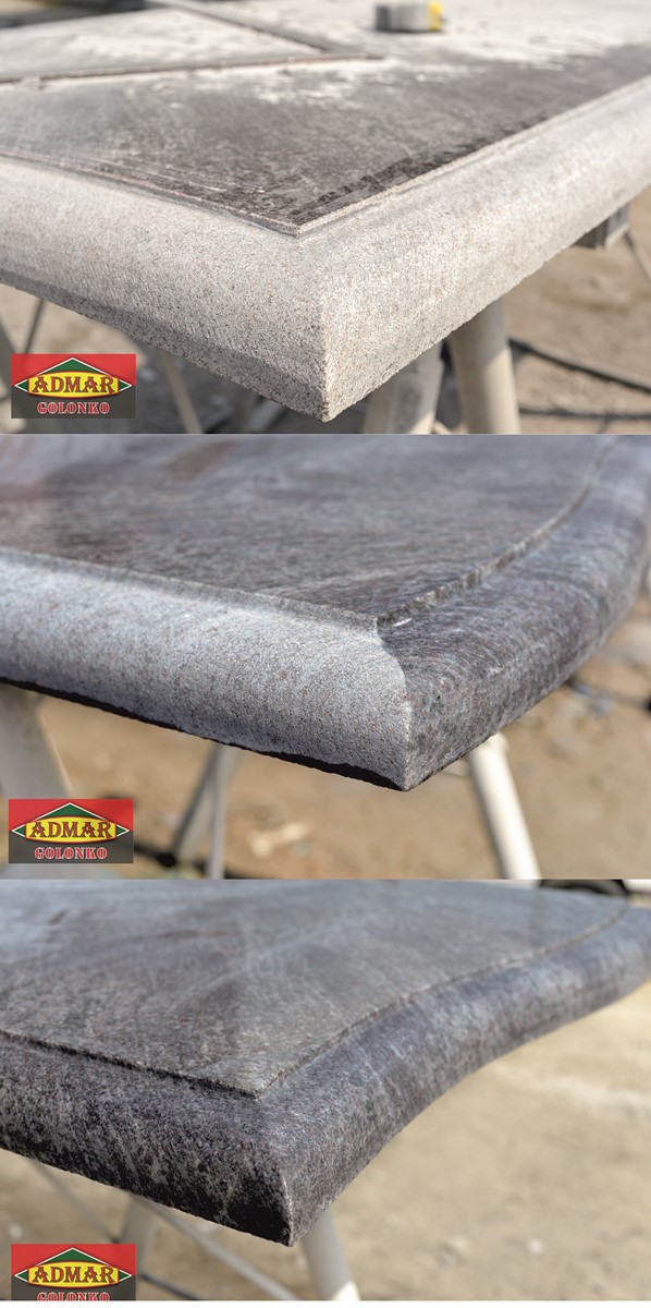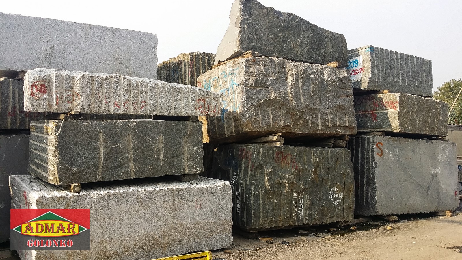 Kamień kupujemy w postaci dużych bloków kamiennych. Następnie bloki cięte są na tz. slaby i dostarczane do zakładu ciężarówkami. Płyty składowane są na placu, cięte i obrabiane wg zamówienia klienta.
